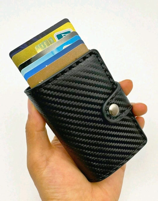 Portefeuille Compact Noir Antivol – Effet Carbone & Blocage RFID