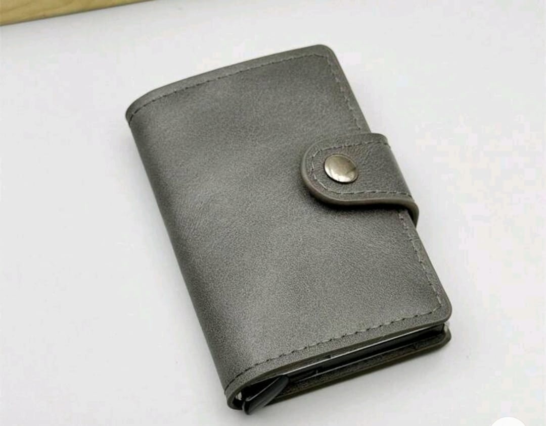 Portefeuille compact en alliage d'aluminium – Design gris unicolore avec fermeture à pression